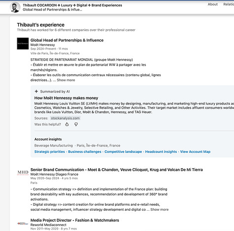 At this point I’m not really sure what else there is to say here. I mentioned last week that the collaboration with Murakami x Dom Pérignon signaled that LVMH’s wine & spirits division is fucked, and I keep seeing data points that confirm this. If your marketing team can’t get their shit together to a point where your product isn’t everywhere to be found at events that you’re paying €1bn to sponsor I don’t know what to tell you.